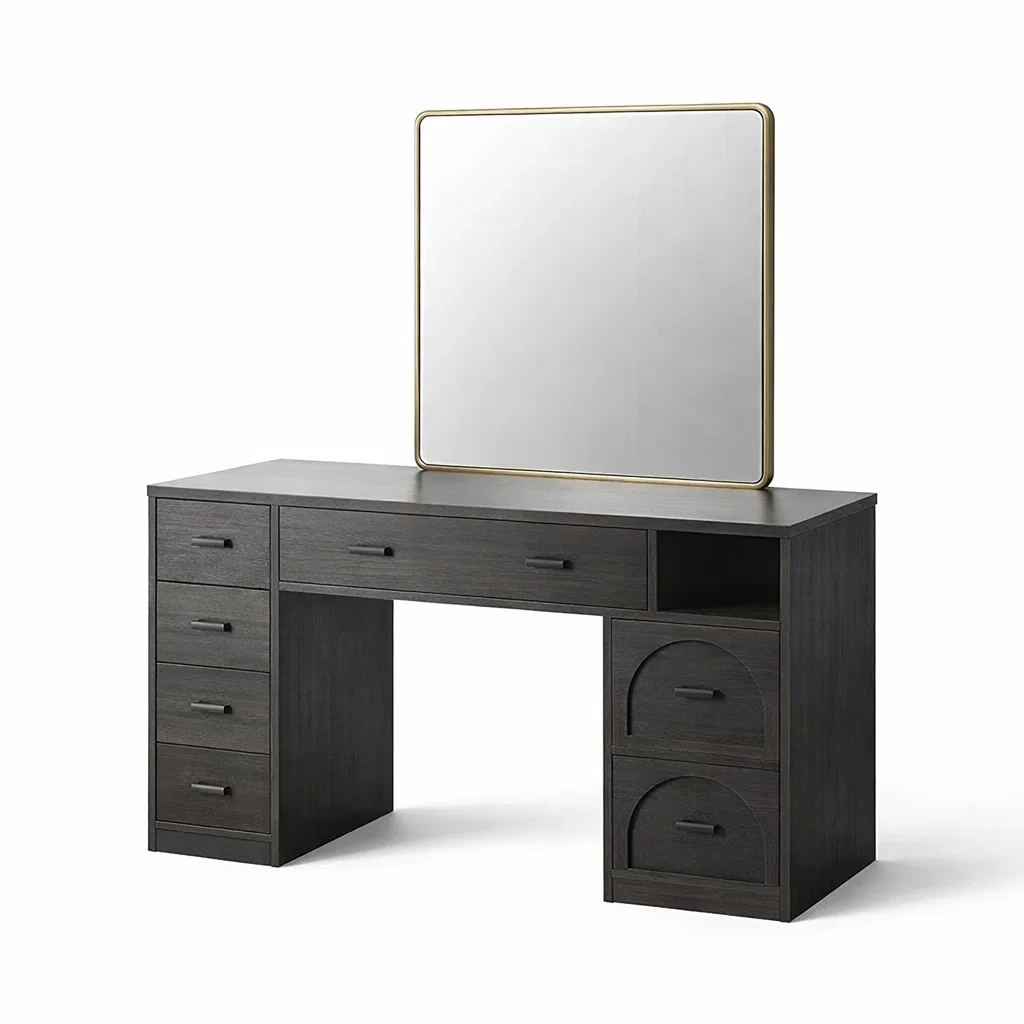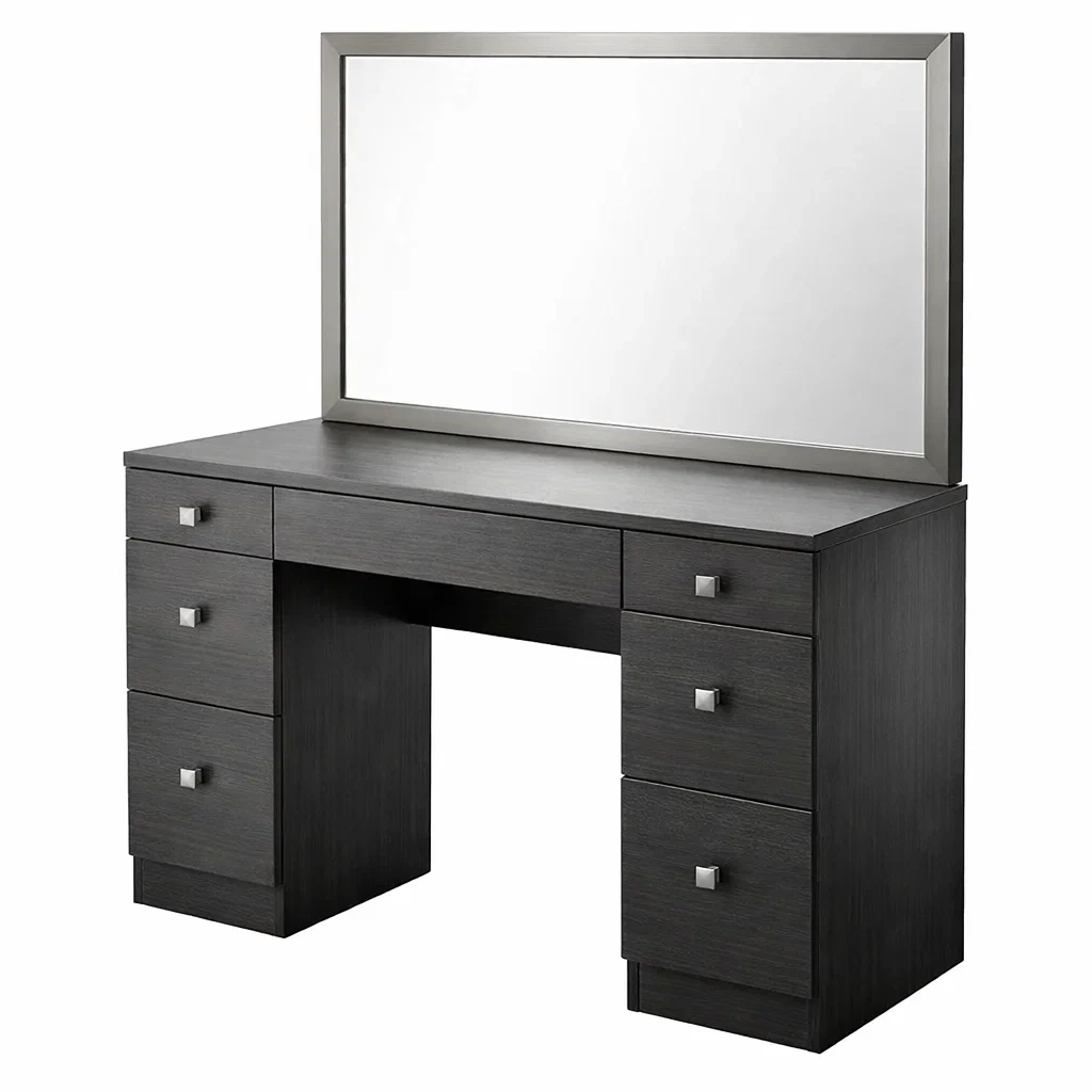 Schminktisch holz mit spiegel und 7 schubladen grau