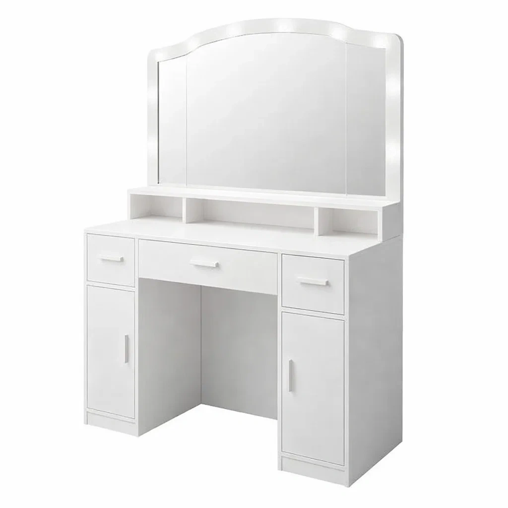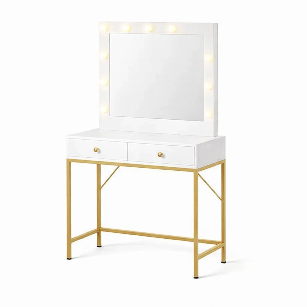 Schminktisch aus spanplatte mit spiegel und led metallrahmen
