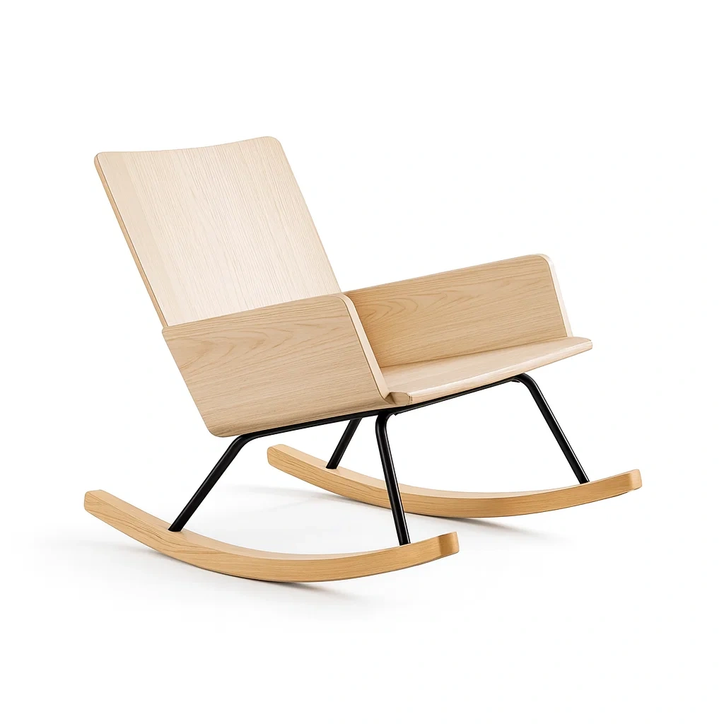 - Sitzfläche, Armlehnen, Gestell, Schaukelkufen